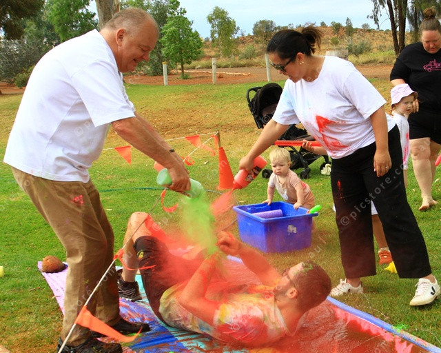 BOMBED: A runner gets bombed at one of the colour stations. (PIC: PHIL WILLIAMS 527480_15)