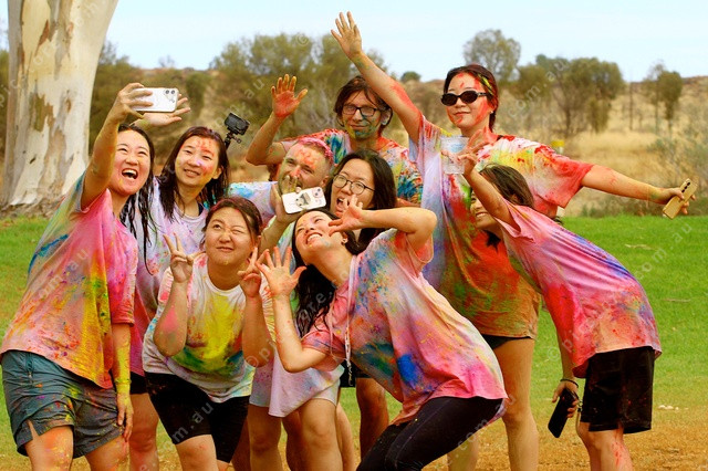 SELFIE: A group of runners gather for a selfie after the Yulara Colour Run. (PIC: PHIL WILLIAMS 527480_16