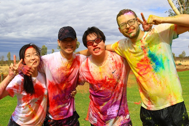 COVERED: Runners covered in colour after the Colour Run at Yulara. (PIC: PHIL WILLIAMS 527480_17)