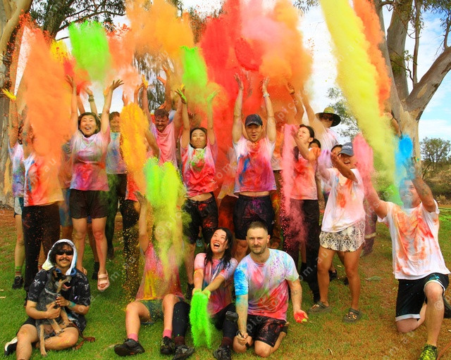 PUFF: Runners celebrate the messy end of the colour run at Yulara. (PIC: PHIL WILLIAMS 527480_19)