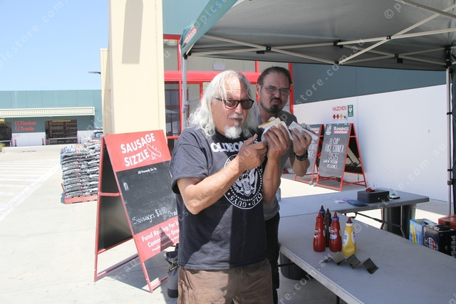 Armando and Rueben Delvecchio couldn’t wait to grab a snag from the Zonta Club on Australia Day. (Dee Elferink:530721_06)